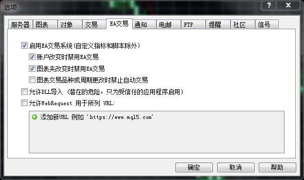 那里有几个选项,例如账户改变时、走势图表改变时、交易品种或周期改变时,是否禁用EA。用户可以根据自己EA的特点和要求自行设置。