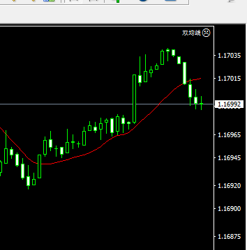 鼠标点中“双均线”EA,直接把它拖到右边走势图里即可,EA会出现在走势图表的右上角处,如下图中的人脸小圆圈。