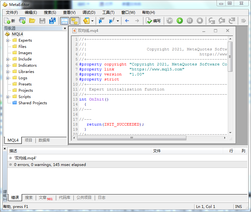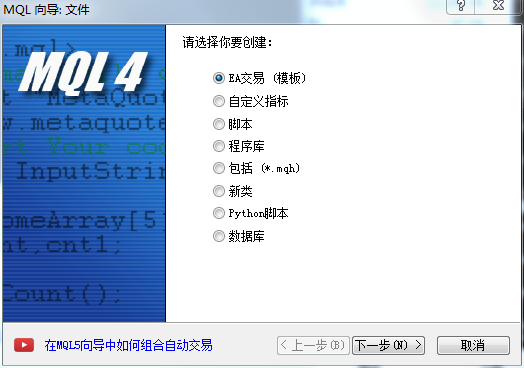 第四步,自己编写一个EA,步骤如下: